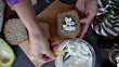 in this video you can see hands of mature woman spreading sour cream and avocado sauce on slice of bread with a tea spoon.