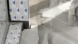 Spreading watertight liquid resin on cracked cement floor with trowel