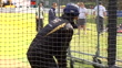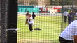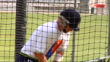 Ian Bell (MCC and Warwickshire) batting in nets (seen from behind)