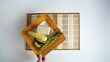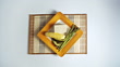 MS HA Square plate with vegetables and tofu artfully arranged being served onto mat - HD stock video