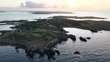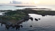 Aerial sideways tracking footage of St Agnes at sunrise. Isles of Scilly. Cornwall, UK.