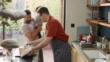 CS, Stabilized Handheld - Homosexual couple in kitchen with son making casserole - 4K stock video