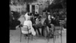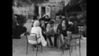 Stage and screen actor Katina Paxinou talks to friends while sitting on outdoor café seating in Athens. A waiter is waved down and attends to the table. She is being filmed as part of an item about her involvement in the National Theatre of Greece. 1961. (LMA6058P - AEVZ001J)