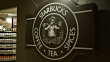 Starbucks signage at their headquarters in Seattle, Washington, United States on October 19, 2014, Close up of The store sells whole bean coffee only signage and the original Starbucks logo, Close ups of a Starbucks company timeline on a wall, 1971 and Pike Place Market signage, Close ups of the original and current Starbucks logo