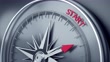 Start text is in focus on three dimensional realistic compass's needle. High quality image is ready to crop all your social media sizes with copy space.