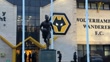WOLVERHAMPTON, ENGLAND - FEBRUARY 27: A statue of Billy Wright, CBE, stands outside Molineux Stadium prior to the Premier League match between Wolverhampton Wanderers and Aston Villa at Molineux on February 27, 2026 in Wolverhampton, England. (Footage by Michael Regan/Getty Images)