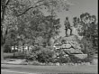 1940: MINUTEMAN: Statue of Minuteman (Captain John Parker) on rock at edge of Lexington Battle Green in Lexington, Massachusetts. (statue by artist Henry Hudson Kitson), Revolutionary War Memorial.