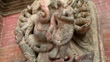 Tilt up of a statue of the goddess Ganesh outside a temple in the Patan Durbar Square, Lalitpur, Nepal
