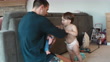 Stay-at-home dad at home with his two young children - 4K stock video