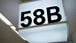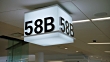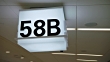 Close-up SteadiCam of gate sign 58B at San Francisco International Airport terminal / San Francisco, California, United States. Captured with Arri Alexa camera.