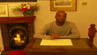 Stephen Wiltshire gallery and interview; Vars Stephen Wiltshire sits at desk in gallery drawing picture
