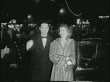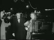 B/W 1955 Steve Allen + wife Jayne Meadows exiting limo at premiere of "The Benny Goodman Story"