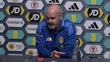 GLASGOW, SCOTLAND - OCTOBER 14: Steve Clarke, Scotland manager, talks about Ben Doak during press conference ahead of their UEFA Nations League clash against Portugal at Hampden Park on October 14, 2024 in Glasgow, Scotland. (Footage by Niche Sport Media via Getty Images)
