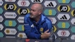 GLASGOW, SCOTLAND - OCTOBER 14: Steve Clarke, Scotland manager, talks about lowering expectations on Ben Doak during press conference ahead of their UEFA Nations League clash against Portugal at Hampden Park on October 14, 2024 in Glasgow, Scotland. (Footage by Niche Sport Media via Getty Images)