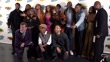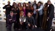 NEW YORK, NEW YORK - OCTOBER 15: (L-R) Stevie Walker-Webb, Oskar Eustis, Latrice Pace, Sheléa Melody McDonald, Tamika Lawrence, Donovan Louis Bazemore, Tiffany Mann, Cole Taylor, Brian D. Coats, Jordan E. Cooper, Eboni Nichols, and Donald Lawrence attend Jordan E. Cooper's "OH HAPPY DAY!" Opening Night Red Carpet on October 15, 2025 in New York City. (Footage by New Vision/Getty Images)