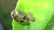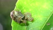 Stink bug (Nezara viridula) caring for its eggs and young chicks.