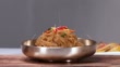 Stir-fried Korean Chili Peppers and Pork (or Japchae, Korea Traditional Festival foods) with sesame in the bowl - 4K stock video