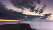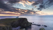 Stoer Lighthouse at sunset, featuring a passing ship in the distance. Located in Sutherland, on the remote and wild northern coast of Scotland, Stoer Lighthouse is a true gem. With its rugged cliffs, pristine beaches, and expansive views of the Atlantic Ocean, this location offers a breathtaking and unspoiled glimpse of Scotland's natural beauty. Filmed at sunset and dusk. With the camera smoothly panning through the scene.