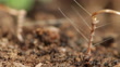 Timelapse footage of the seed of the stork's-bill plant (Erodium cicutarium) screwing itself into soil. The seeds of this plant have a long tail, or awn, which stores energy when coiled. This energy springs the seed from its parent plant when it dries out, helping disperse it away from its parent. The awn changes shape in differing humidity levels, which turns the spiral awn and pushes the seed along the ground until it gets stuck in a small crevice. The coiling of the awn then screws the seed into the soil. The plant is native to Eurasia and north Africa, but has become naturalised in North America
