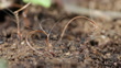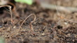 Timelapse footage of seeds of the stork's-bill plant (Erodium cicutarium) screwing themselves into soil. The seeds of this plant have a long tail, or awn, which stores energy when coiled. This energy springs the seed from its parent plant when it dries out, helping disperse it away from its parent. The awn changes shape in differing humidity levels, which turns the spiral awn and pushes the seed along the ground until it gets stuck in a small crevice. The coiling of the awn then screws the seed into the soil. The plant is native to Eurasia and north Africa, but has become naturalised in North America