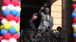 CAPE TOWN, SOUTH AFRICA - JUNE 24: Stormers rugby team players wave from the balcony of City Hall next to Nelson Mandela's statue on June 24, 2022 in Cape Town, South Africa. The Stormers Rugby Team won the United Rugby Champions (URC) on June 18, and were hosted in a victory parade on June 24 starting at the Cape Town City Hall, through the streets of Cape Town, ending at Cape Town Stadium. Western Cape Premier Alan Winde and Mayor of Cape Town Geordin Hill-Lewis joined the celebrations. (Footage by Wesley Fester/Getty Images)