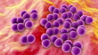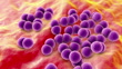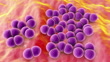 Animation of pneumococcus bacteria, Streptococcus pneumoniae, a common cause of pneumonia and bacterial meningitis. S. pneumoniae is a normal member of the bacterial flora of the upper respiratory tract, but it can become pathogenic in certain cases, such as when the host has a weakened immune system. The bacteria usually exist in pairs (diplococci)