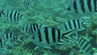 MS Striped butterfly and black and white striped sergeant major fish / Egypt - HD stock video