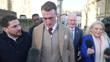 Stuart Hogg court arrival; SCOTLAND: Jedburgh: Jedburgh Sheriff Court:EXTStuart Hogg (Rugby Union player) along street into building / Hogg departing, ignoring doorstep questions from press including ITV News reporter Peter Smith / Hogg into car and away