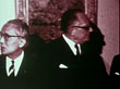 Suez Canal / thick black smoke rising from burning oil tank on Egyptian side of canal / three Israeli soldiers riding in Jeep through desert / two Israeli tanks rolling through desert; two Israeli soldiers inspecting remains of downed Egyptian MiG jet fighter in desert, pan right to debris with date of 11/27/69 scrawled; CU Egyptian air force emblem / Palestinian guerrilla (PLO, Palestine Liberation Organization) training camp, probably in Jordan / Arab man running through obstacle course consisting of barbed wire, fire and smoke, deep pit / Arab guerrillas wearing shemagh head scarves practicing judo take-downs; guerrilla crawling on back beneath low-lying barbed wire, two burning tires on either side; two Arab men leaping off platform with flag of Palestine / three guerrillas running through stone alley / PLO guerrilla wearing shemagh scarf on head while manning light machine gun in sandbag bunker on street / Arab guerrilla wearing shemagh, holding rifle while crouched beside Arabic graffiti on wall and pillar / group of heavily-armed Palestinian guerrillas by alcove on street / Israeli military officials collecting intelligence in remains of marketplace attacked by Palestinian terrorists, Feb 21, 1969; debris, broken crates and wares / President of Egypt GAMAL ABDEL NASSER reviewing dossier / diplomats including US Secretary of State WILLIAM ROGERS and Soviet Foreign Minister ANDREI GROMYKO. Arab-Israeli Tensions on January 01, 1969 in Egypt (Footage by Getty Images)