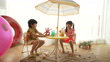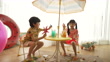 Summer, Sea and Homcance - Boy and girl child playing with conch shell and starfish model - 4K stock video