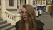 Sunbed salons flout rules by promoting 'healthy tans'; EXTLauren Bennett (Fair-skinned sixteen year old girl)Back view Bennett entering tanning salonLauren Bennett (Fair-skinned sixteen year old girl) interview SOTReporter to camera