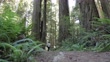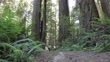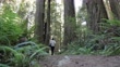 Sunlight shines on a beautiful old-growth redwood forest in Humboldt, California. Woman in Context: Secuoia sempervirens trees are among the tallest and most massive tree species on the planet. - 4K stock video