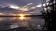 On a small boat, using a small stabilizer to film the sunset on the river.