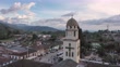 Drone point of view of South America, Colombia, Quindio, Salento. shot at sunset. Salento is famous as a center of coffee production in Latin America.