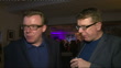 Film: 'Sunshine on Leith' premiere; People milling about / The Proclaimers (Scottish band) (Charlie Reid and Craig Reid) interview SOT / Antonia Thomas (Actress) interview SOT