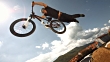 HD1080p: Super Slow Motion shot of a professional bmx dirt rider performing superman trick while jumping over dirt jump on the bmx track. Recorded at 1050 fps