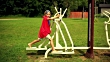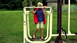 a boy wearing a superman costume taking several outdoor fitness exercises