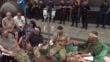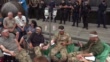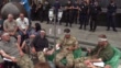 Supporters and friends of voluntary fighter Vitaliy Oleshko receive a solution infusion via intravenous drip on 22 day of their hunger strike in front the President Office in Kyiv, Ukraine, on 30 June, 2020. 22 days ago former volunteer fighters of 'Donbas' volunteering battalion went in hunger strike demand to return to the pre-trial detention center of murder suspects and to finish the investigation of the killing of their brother-in-arms Vitaliy Oleshko (call sign 'Sarmat'), as media reported. Vitaliy Oleshko was shot dead on July 31, 2018 in Berdyansk. He was a volunteer of the 'Donbass' voluntary battalion, and participated in the battles for Ilovaisk, local media reported. (Footage by STR/NurPhoto via Getty Images)
