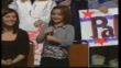 Supporters in Des Moines, Iowa, cheer Piper Palin, the young daughter of Republican Party Vice Presidential candidate Sarah Palin.