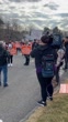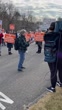 WOBURN, MASSACHUSETTS - JANUARY 29: A supportive striker speaks into a megaphone on January 29, 2023 in Woburn, Massachusetts. (Footage by @gibbs_rob/TMX via Getty Images UGC)