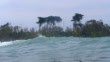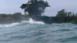 A surfer surfing waves and doing a hang five trick on his classic longboard surfboard. - Slow Motion - 4K stock video