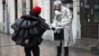 STOCKHOLM, SWEDEN - FEBRUARY 8: (SLOW-MO) Susan Stjernberger wearing Stina Rand X Filippa K and Five Units and Fredrik Robertsson wearing Louis Vuitton Mirror line coat and briefcase and glasses outside hotel Nobis during Stockholm fashion week Autumn/Winter 2022 on February 8, 2022 in Stockholm, Sweden. (Footage by Raimonda Kulikauskiene/Getty Images)