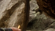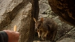 A shot of a man feeding a Swamp Wallaby then suddenly the Swamp Wallaby ran away from the man.