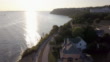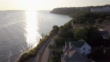 A Sweeping Drone View Of The Cozy Little Town Of Mackinac On Mackinac Island At Sunset - 4K stock video