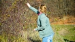 Young woman in nature picking sweetbrier for winter