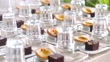 Slow motion CU panning right Camera and selective focus with color grading. Use for background clip or insert shot of Egg tart and Chocolate cake in the white dish.