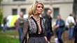 PARIS, FRANCE - OCTOBER 02:  Sylvie Tellier wears a lace mesh dress, outside Leonard, during Paris Fashion Week Womenswear Spring/Summer 2018, on October 2, 2017 in Paris, France.  (Footage by Edward Berthelot/Getty Images)