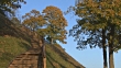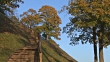Calm autumn landscape with stairs and yellow trees. HD, Loop