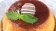 Syrup falling on top of a creme caramel dessert - 4K stock video