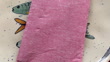 Directly above close-up panning shot of a knife and fork inside napkin over a ceramic plate at seafood restaurant